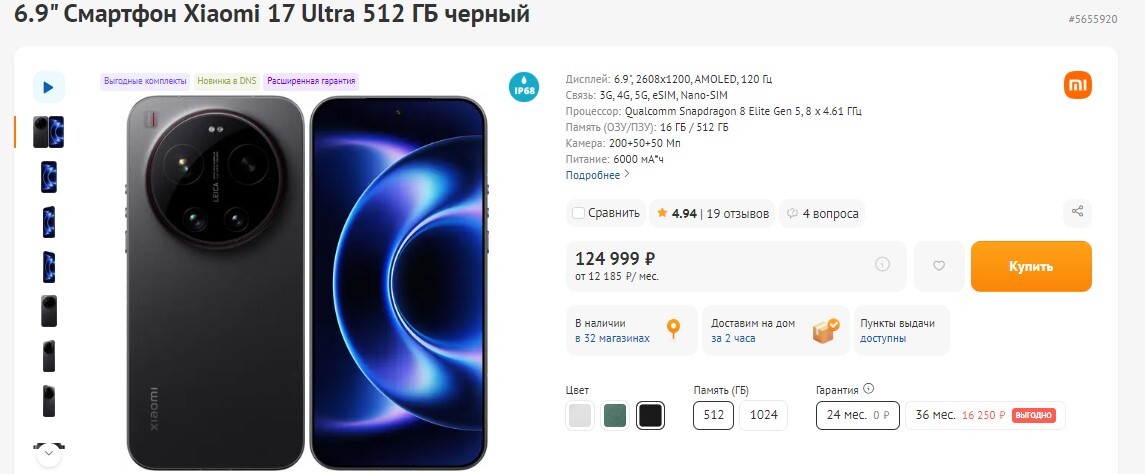 Флагман;Xiaomi 17 Ultra;Камера, мощность, экран;110–130 тыс. ₽;Любители фото и видео